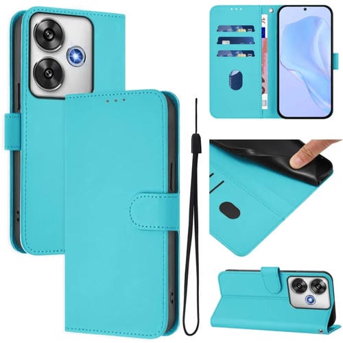 Funda de Piel Sintética con Cordón para Xiaomi Poco F6 5G (Azul Lago)