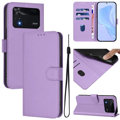 Funda de Piel Sintética con Cordón para Xiaomi Poco M4 Pro 4G (Morado Lavanda)