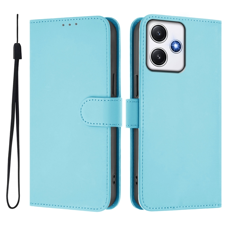 Funda de Piel Sintética con Cordón para Xiaomi Poco M6 Pro 5G (Azul Cielo)