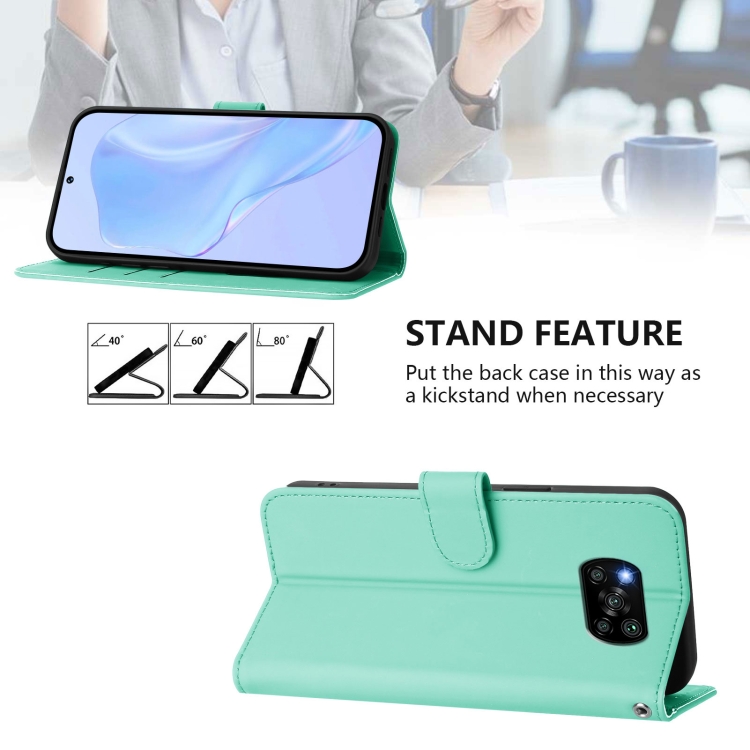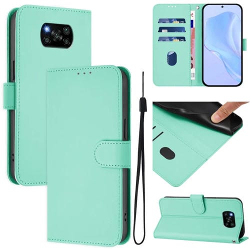 Funda de Piel Sintética con Cordón para Xiaomi Poco X3 Pro / X3 Nfc / X3 (Verde Menta)