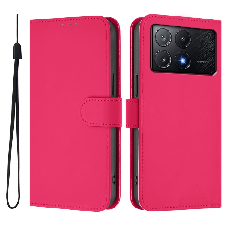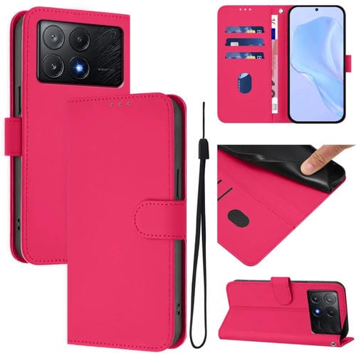 Funda de Piel Sintética con Cordón para Xiaomi Poco X6 Pro (Rosa y Rojo)