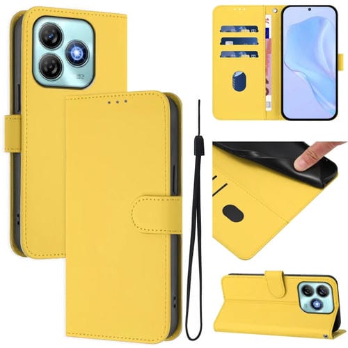Funda de Piel Sintética con Cordón para ZTE Blade A75 4G (Amarillo Limón)