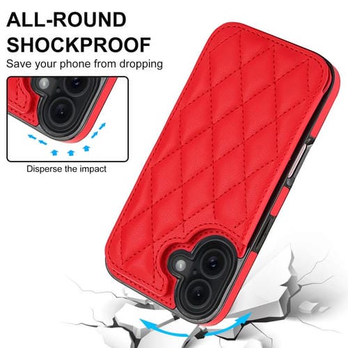 Funda de piel sintética con doble hebilla y diseño rómbico para iPhone 17 (roja)