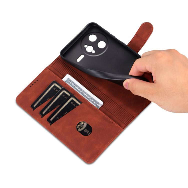 Funda de Piel Sintética con Tapa y Textura de Piel de Becerro Azns para Redmi K80 Pro (Marrón)