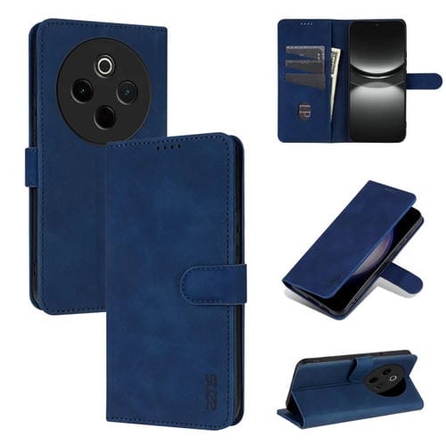 Funda de Piel con Tapa Azns con Textura de Becerro para Vivo Y300 Pro (Azul)