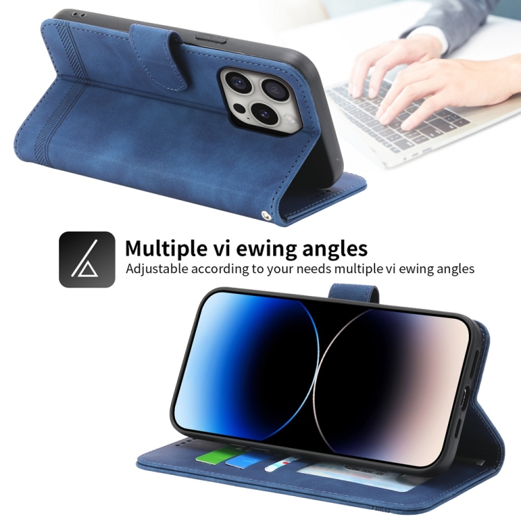Funda de Piel Sintética y TPU Dierfeng Dream Line para iPhone 16 Pro (Azul)