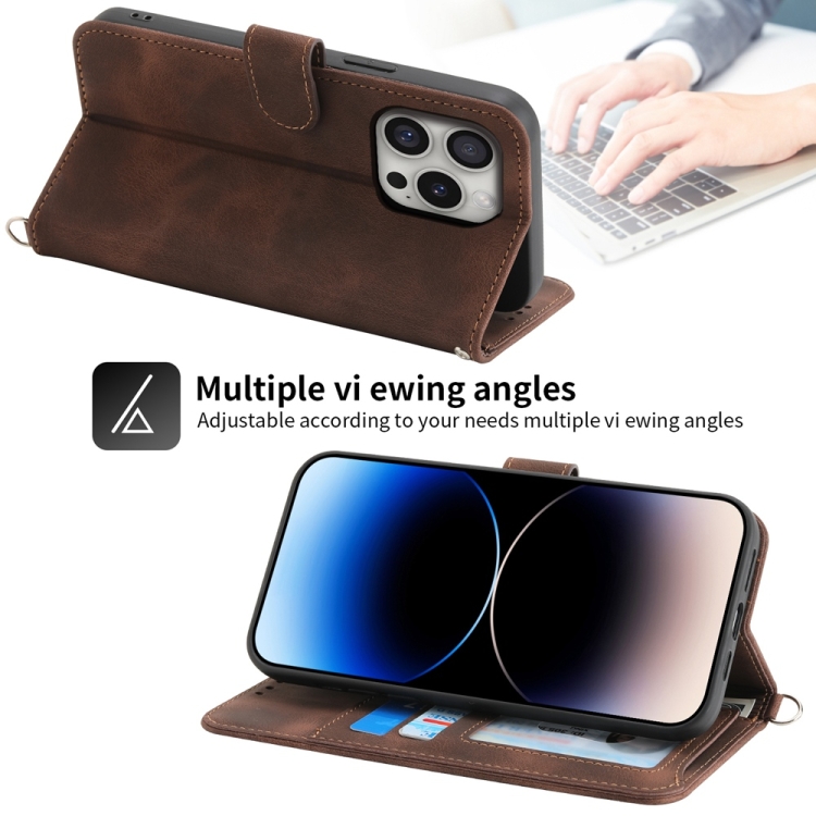 Funda Tipo Billetera Apple iPhone 16 Pro Relieve Flores Piel (Marrón)