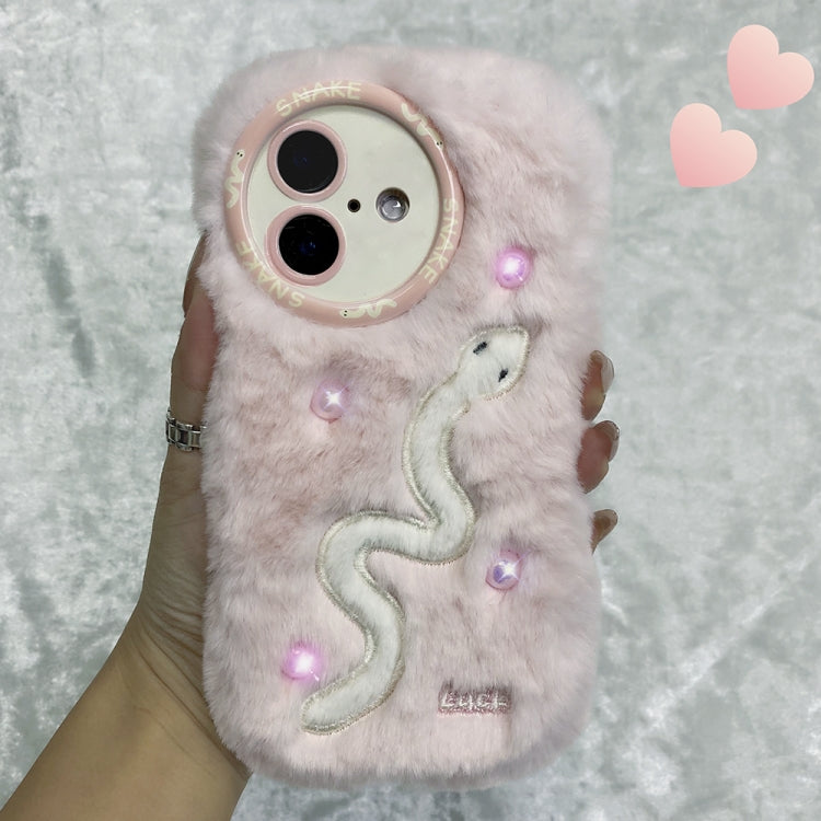 Funda de silicona Bordado Serpiente para iPhone 16 (Serpiente y Rosa)