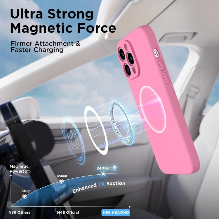 Funda de Silicona con Ventosa Magsafe para iPhone 16 Plus y Película Protectora para Pantalla (Rosa Suave)