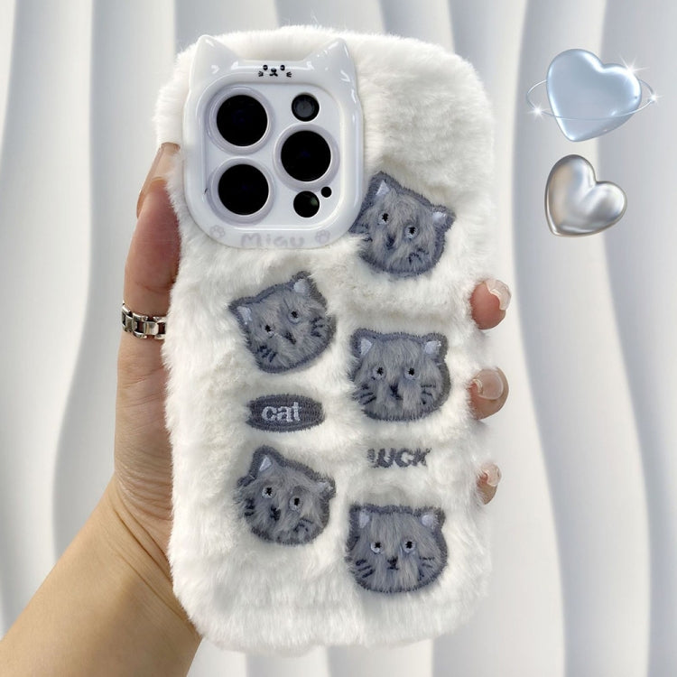 Funda de silicona iPhone 16 Pro Max cobertura total diseño gato de peluche (Blanca)