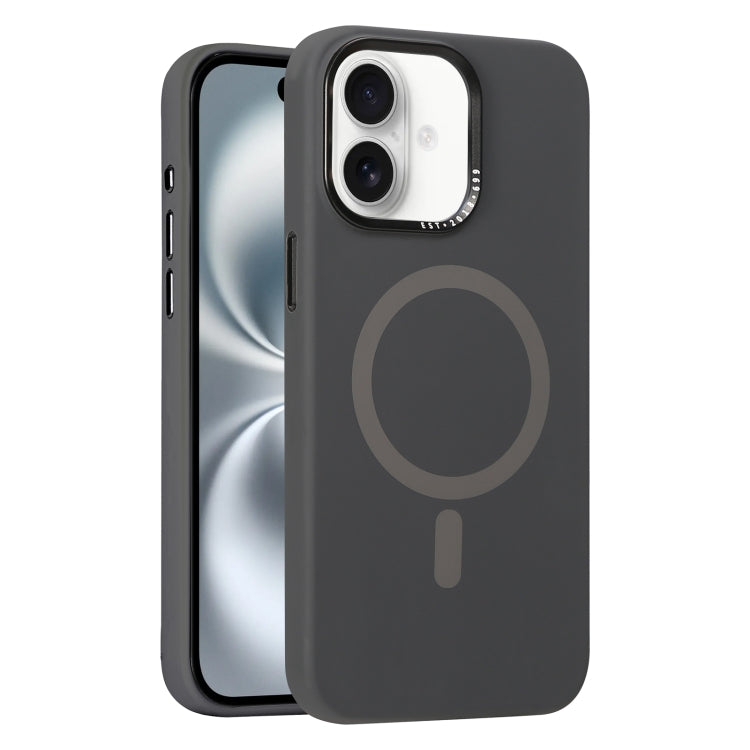 Funda de Silicona Líquida con Marco de Lente de Metal Magsafe para iPhone 16 (Gris Carbón)
