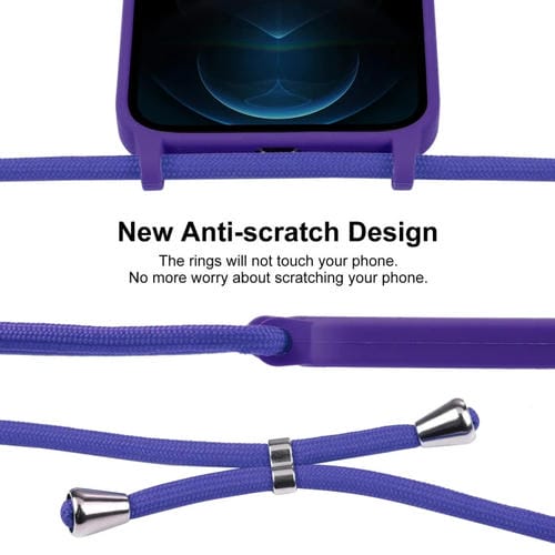 Funda de Silicona Líquida para iPhone 12 Pro Max Crossbody Lanyard (Púrpura)
