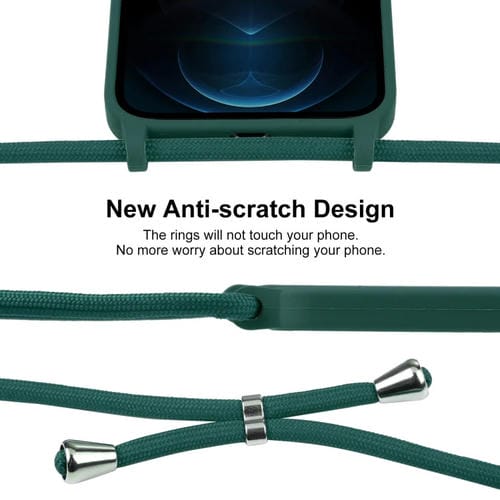 Funda de Silicona Líquida para iPhone 12 Pro Max Crossbody Lanyard (Verde Aguja de Pino)