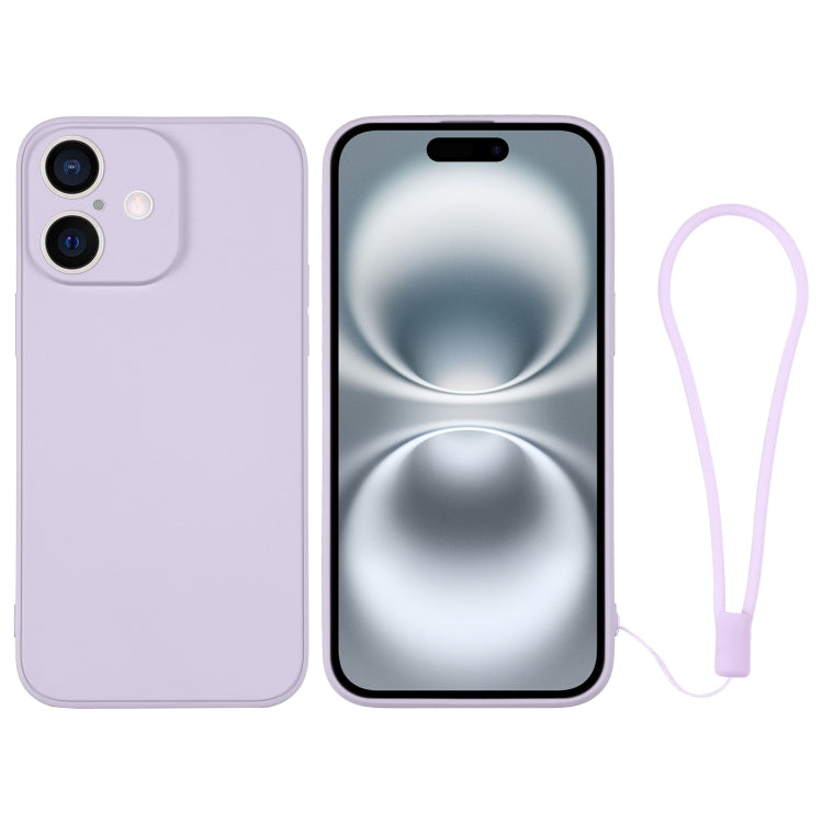 Funda de Silicona para iPhone 16 con Correa para la Muñeca (Morado Claro)