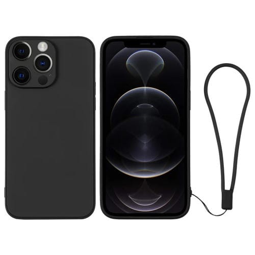 Funda de Silicona para Teléfono iPhone 12 Pro con Correa para la Muñeca (Negro)