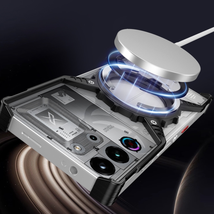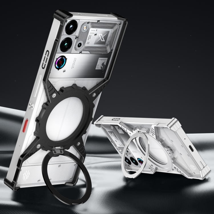 Funda de Teléfono Metal sin Bordes con Soporte Magnético para ZTE Nubia Red Magic 10 Pro / 10 Pro+ (Negro)
