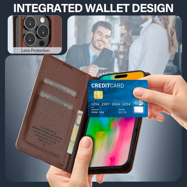 Funda de teléfono Pu Lc.Imeeke L1 Series para iPhone 16 Pro (Marrón)