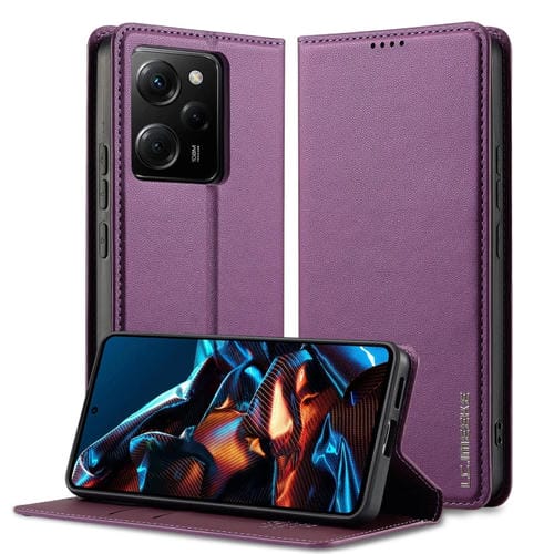 Funda de Teléfono de Pu con Textura Fina Esmerilada para Redmi Note 12 5G Lc.Imeeke L1 Series (Morado)