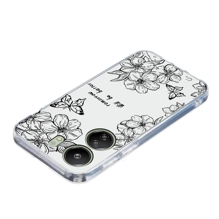 Funda de Teléfono de TPU con Patrón de Pintura Colorida para Redmi 13C 4G (Mariposa y Flores)
