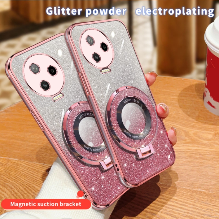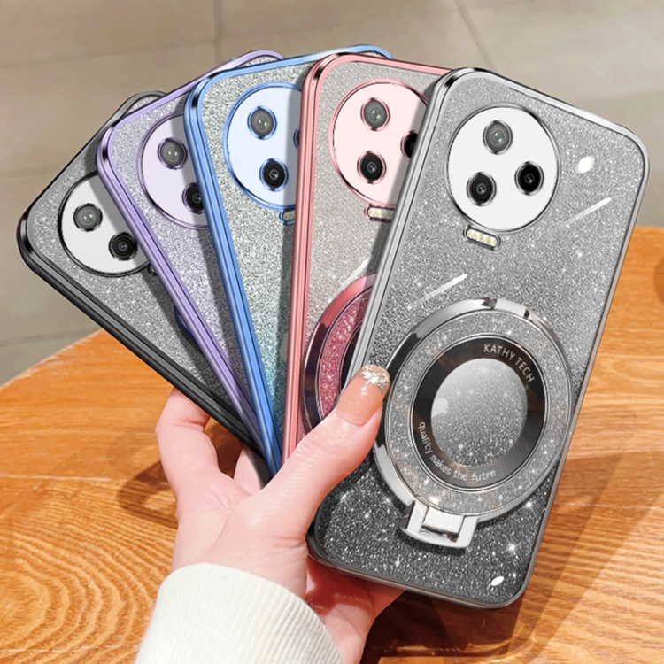 Funda de Teléfono TPU con Soporte Redondo y Purpurina Degradada para Infinix Note 12 Pro 4G (Negra)