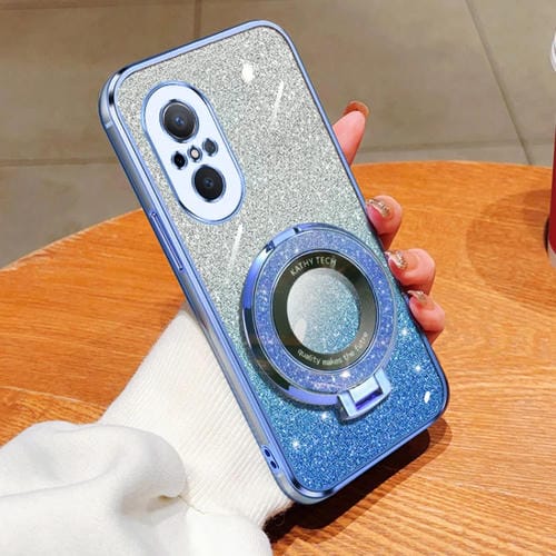 Funda de Teléfono TPU con Soporte Redondo y Purpurina Degradada para Huawei Nova 9 Se (Azul Sierra)