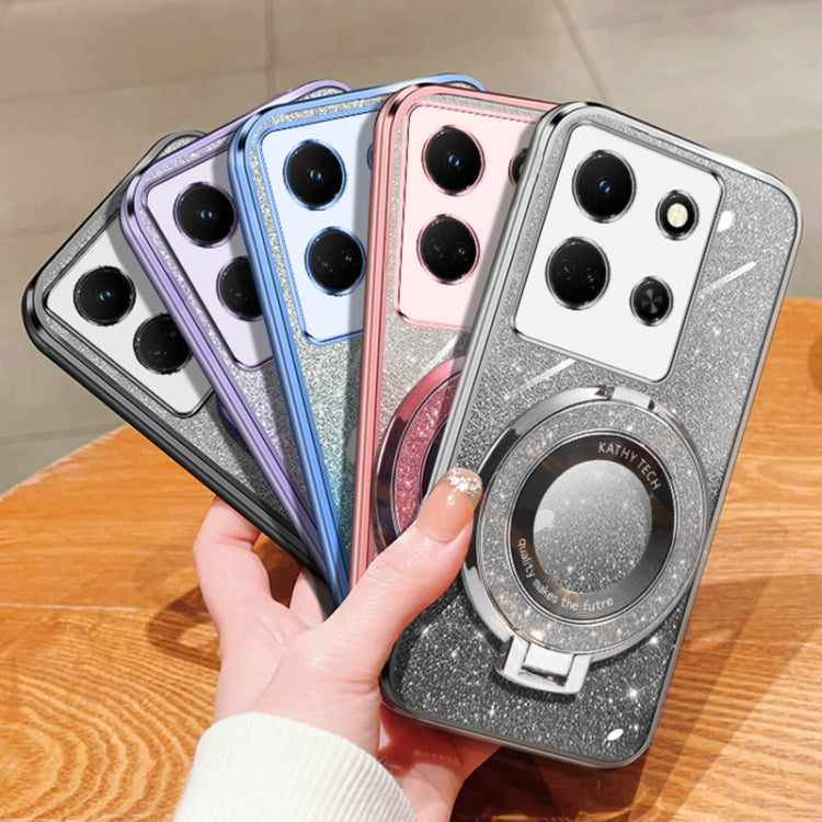 Funda de TPU con Soporte Redondo y Purpurina Degradada para Infinix Note 30 5G (Plateada)