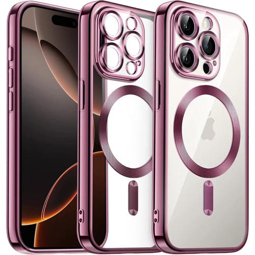 Funda de Teléfono TPU con Galvanoplastia Transparente Magnética Magsafe para iPhone 16 Pro (Rosa)