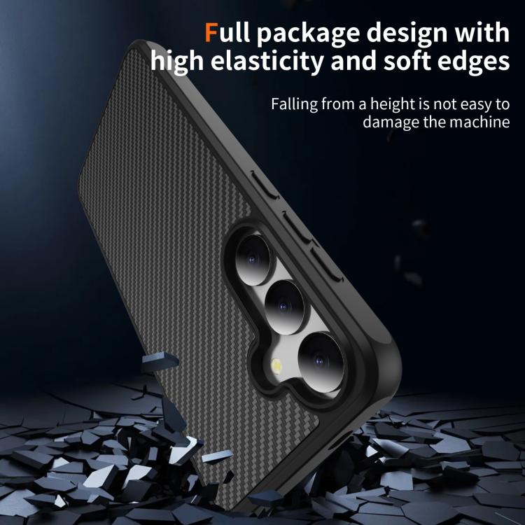 Funda de TPU acrílico con textura de fibra de carbono y tacto suave para Samsung Galaxy S24+ 5G (negra)