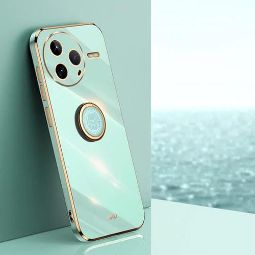 Funda de TPU con Borde Recto 6D Galvanizado y Soporte para Anillo para Redmi K80 Xinli (Verde Menta)