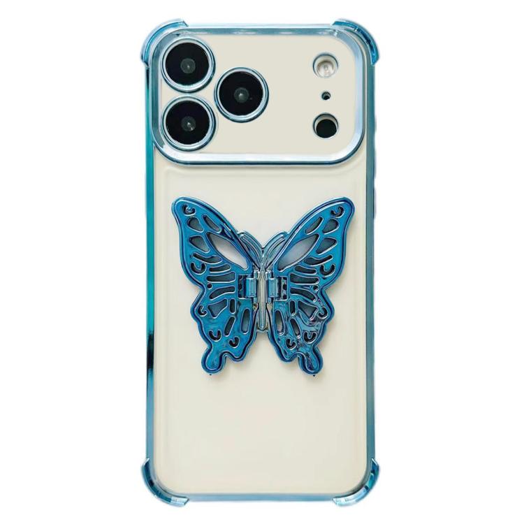 Funda de TPU con diseño de mariposa 3D galvanizada para iPhone 17 Pro Max (azul)