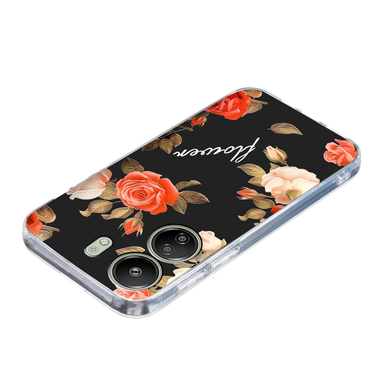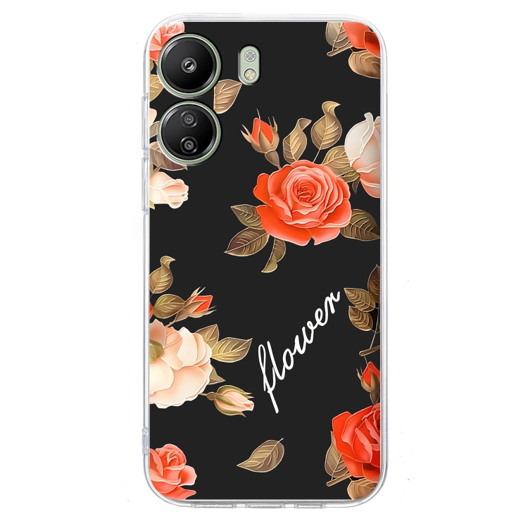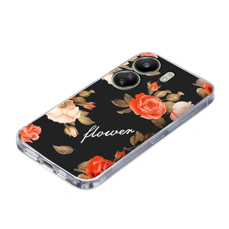 Funda de TPU con Patrón de Pintura Colorida para Redmi 13C 4G (Flores En Negro)