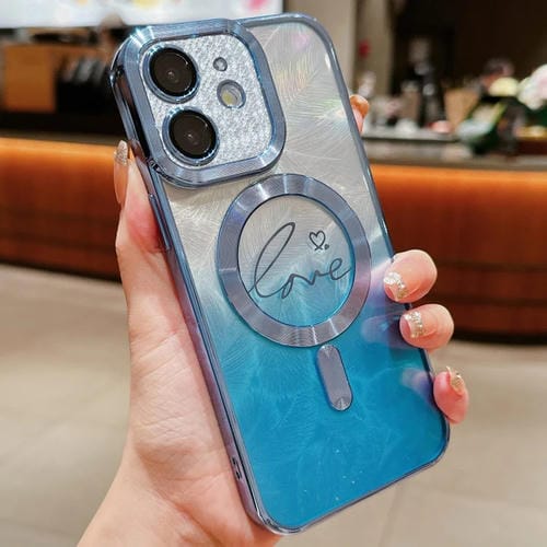 Funda TPU con Purpurina y Degradado de Plumas para iPhone 12 (Azul)