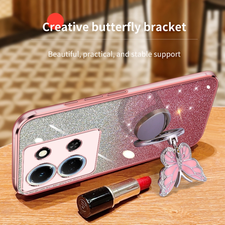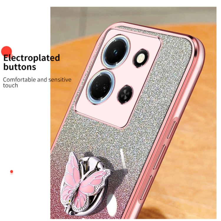 Funda TPU con Soporte Mariposa y Purpurina Degradada para Infinix Note 30 5G (Negra)