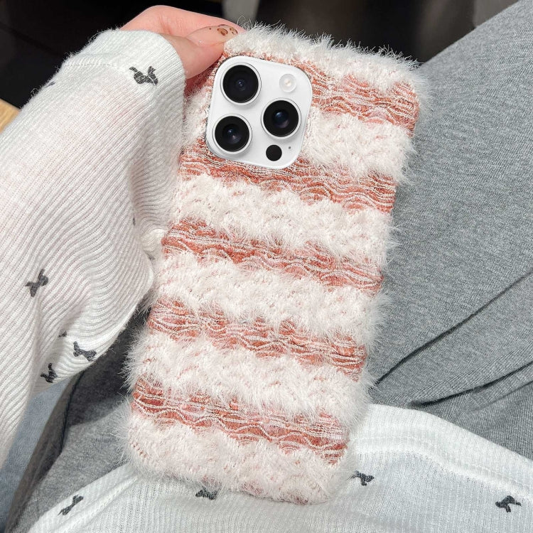 Funda TPU Felpa Tejido a Rayas para iPhone 16 Pro (Rosa)