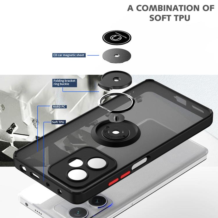 Funda de TPU + PC con anillo para Redmi Note 12 5G Global Q Shadow 1 Series (negro y rojo)