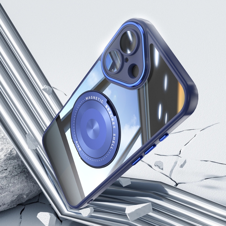 Funda híbrida Acrílico TPU con Soporte 360 Magsafe para iPhone 16 (Azul)