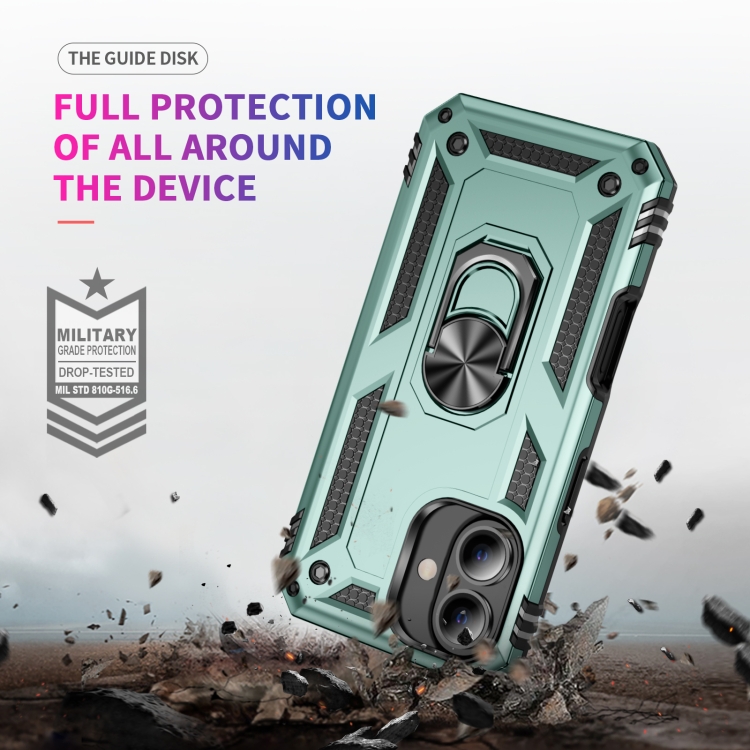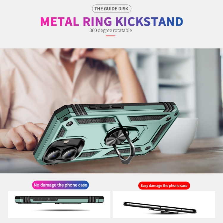Funda Híbrida TPU a Prueba de Golpes para iPhone 16 Plus con Soporte (Verde Oscuro)