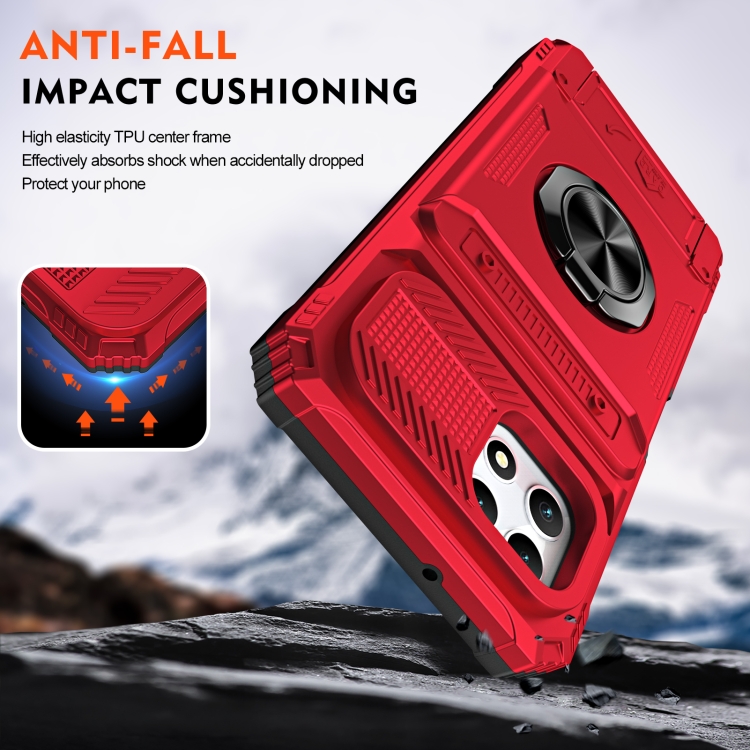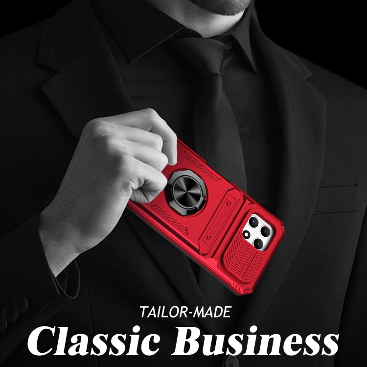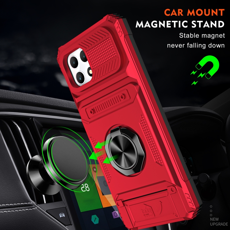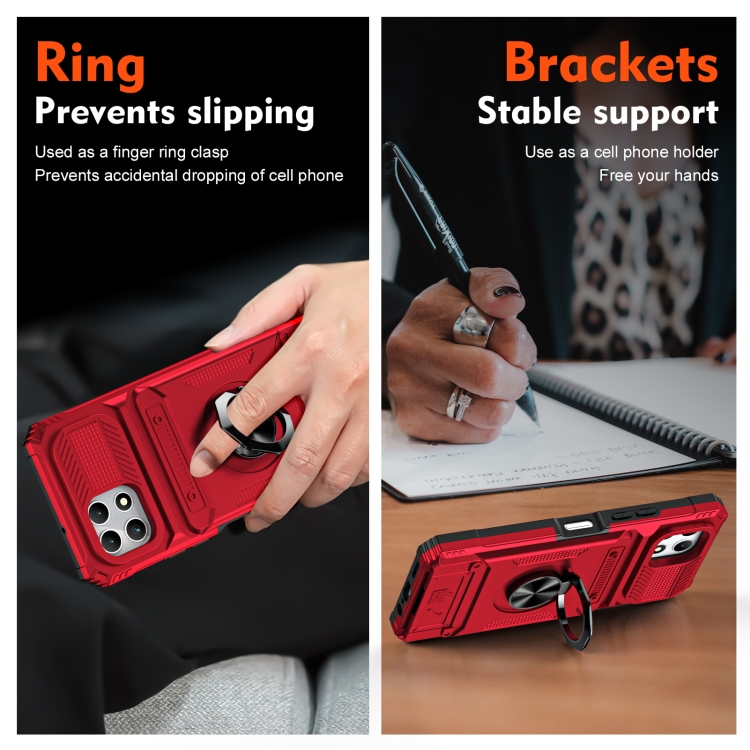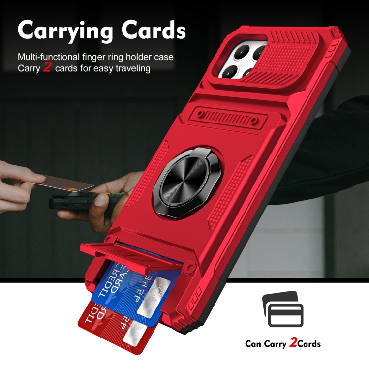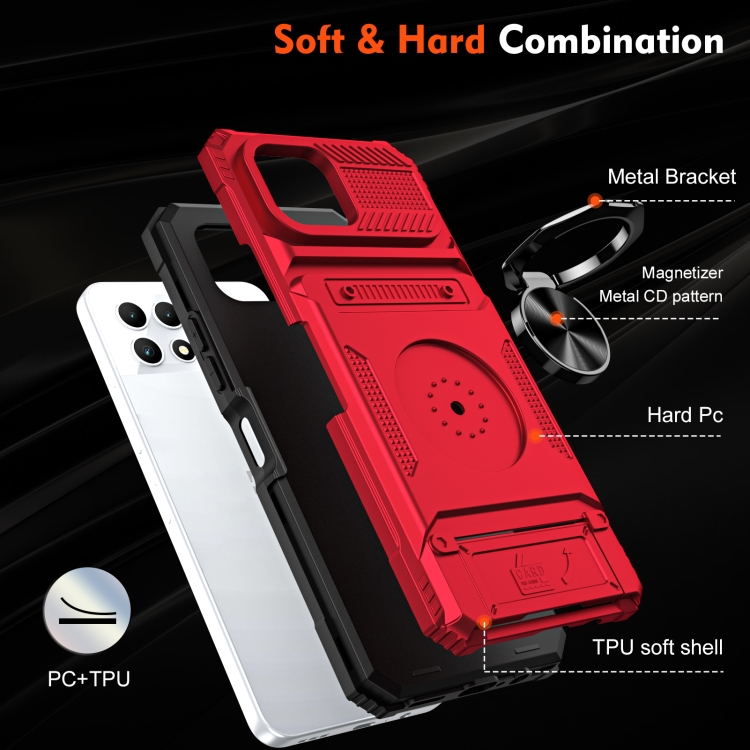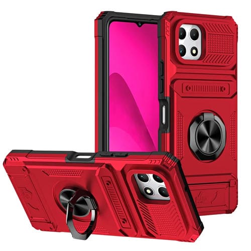 Funda híbrida TPU para T-Mobile Revvl 7 con tarjetero y soporte de anillo (Rojo)