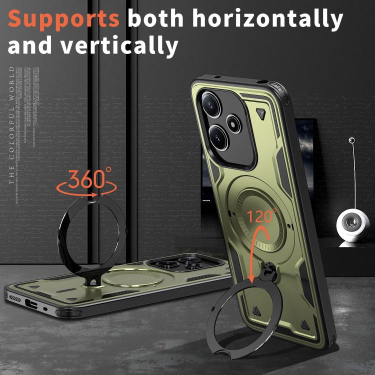 Funda híbrida de TPU con soporte de anillo MagSafe para Redmi 12 5G (verde oliva)