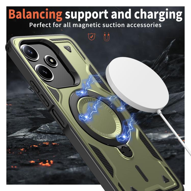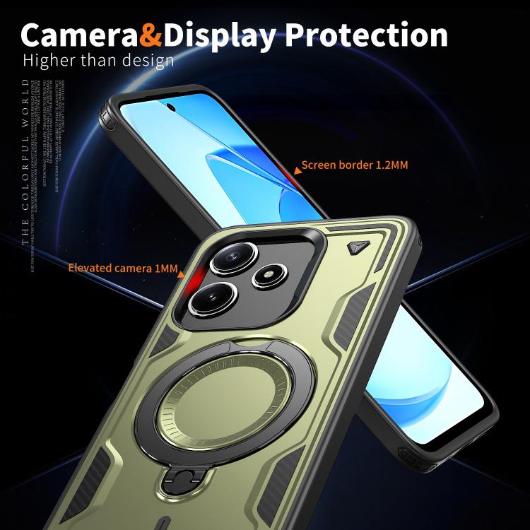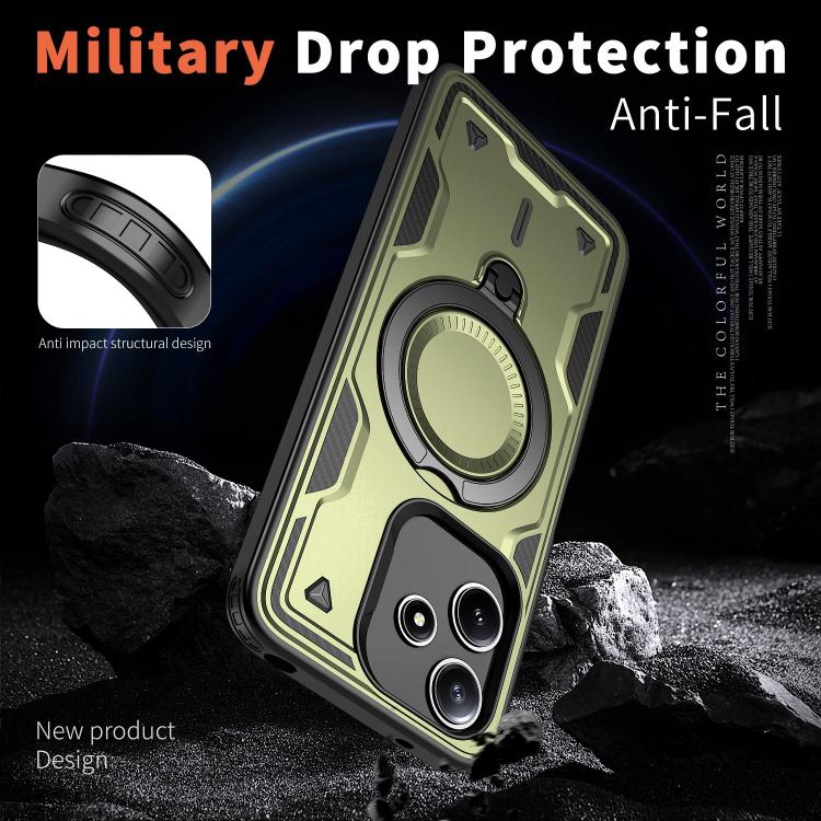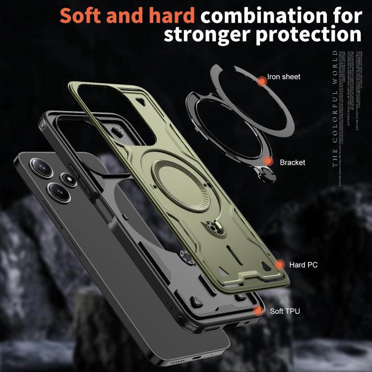 Funda híbrida de TPU con soporte de anillo MagSafe para Redmi 13 4G/5G/Note 13R (verde oliva)