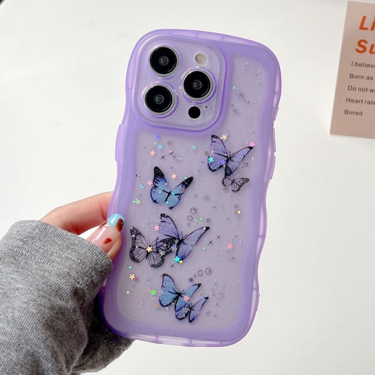 Funda híbrida TPU y PC iPhone 16 Pro borde ondulado mariposa (Morada)