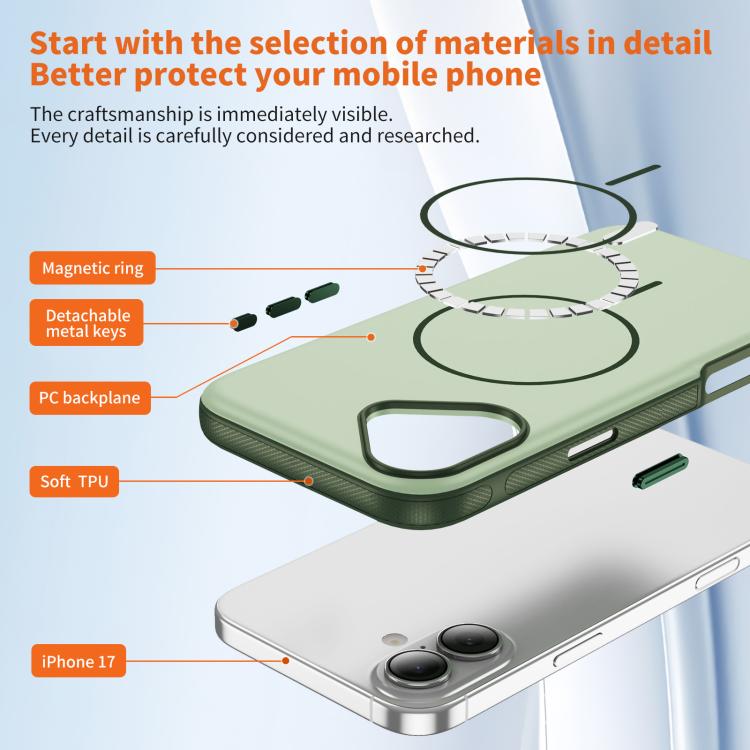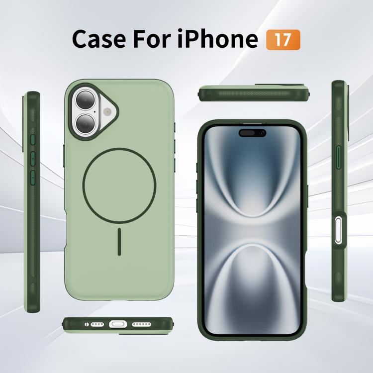 Funda híbrida de TPU y PC con MagSafe para iPhone 17, bicolor, imitación original (verde).
