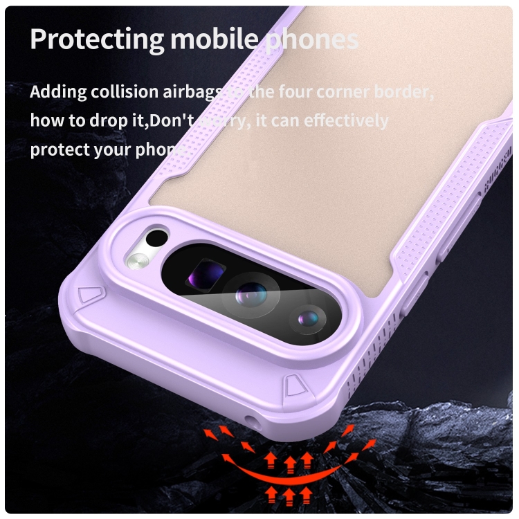 Funda Híbrida TPU y PC con Protección Glaseada para Google Pixel 9 Pro (Morada)