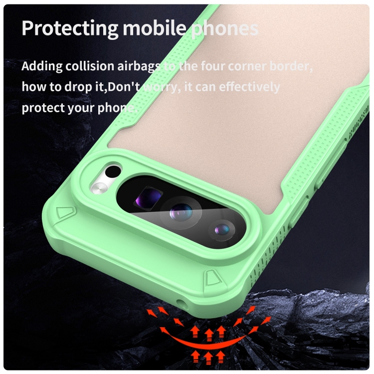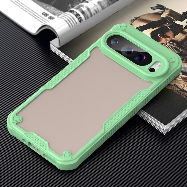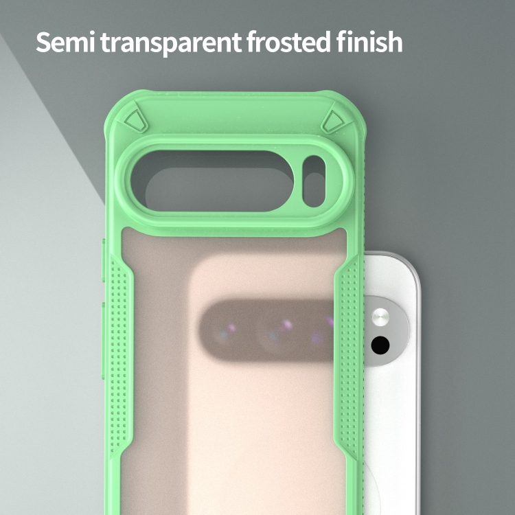Funda híbrida TPU y PC con protección glaseada para Google Pixel 9 Pro (Verde)