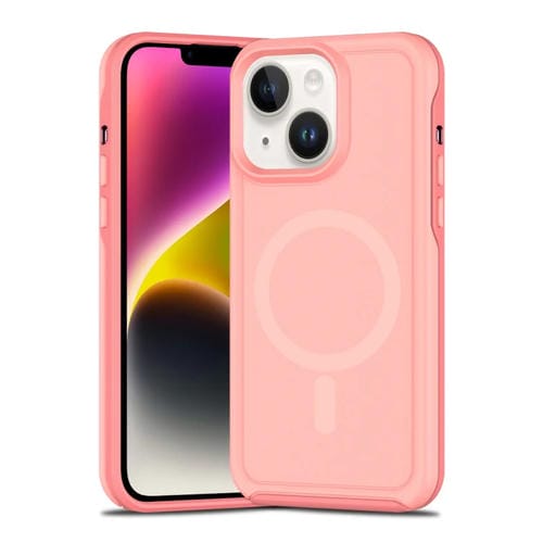 Funda híbrida TPU y PC iPhone 14 Plus Protección Magsafe a prueba de golpes (Rosa Claro y Rojo Coral)