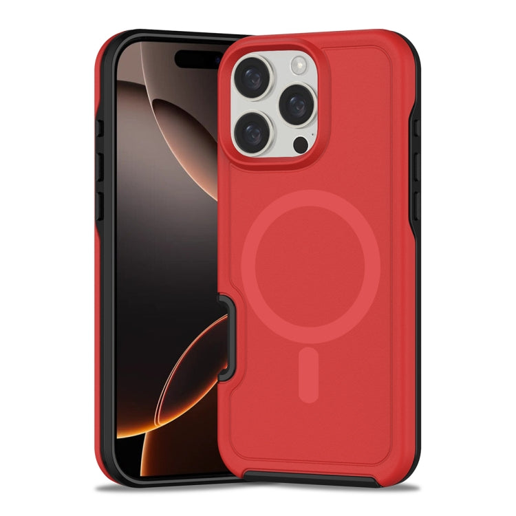 Funda híbrida TPU y PC iPhone 16 Pro Protección Magsafe Prueba de golpes (Rojo y Negro)