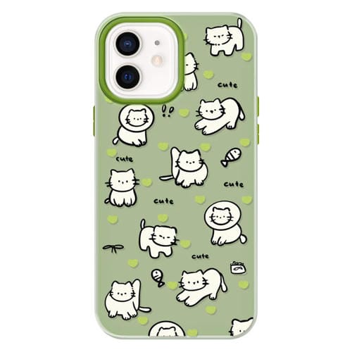 Funda híbrida TPU y PC iPhone 12 con Tacto de Piel (Corazón Verde, Gato Verde)