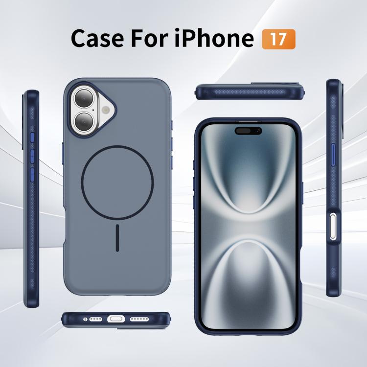 Funda híbrida de TPU y PC para iPhone 17, imitación MagSafe original, bicolor (azul)