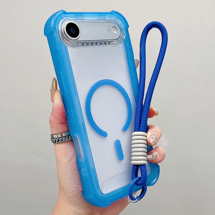 Funda híbrida de TPU y PC transparente mate 3 en 1 MagSafe para iPhone Air con correa de muñeca (azul)