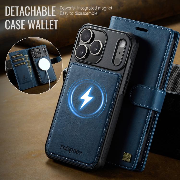 Funda magnética MagSafe AutSpace A05 2 en 1 con textura de piel de becerro retro para iPhone 17 Pro Max (Azul)